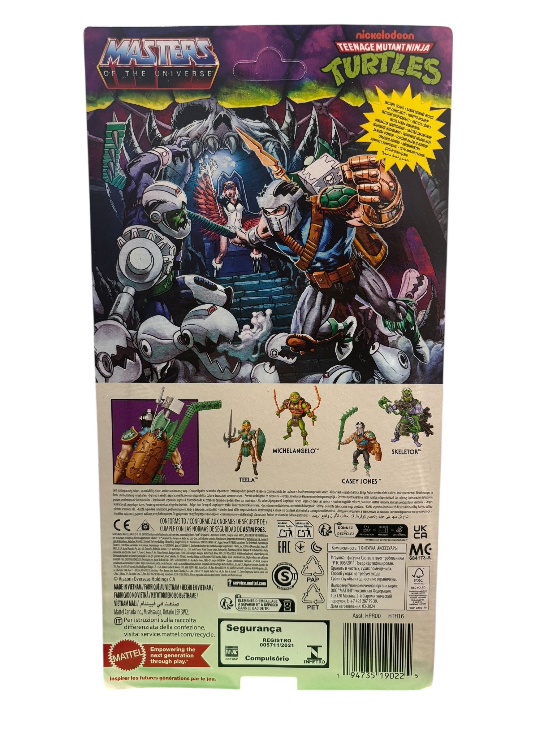 Conçue dans le cadre de la collaboration MOTU X TMNT, cette figurine de 14 cm mêle l’univers des Masters Of The Universe et des Teenage Mutant Ninja Turtles avec créativité. Ainsi, chaque accessoire est pensé pour enrichir le rôleplay, et la bande dessinée fournie ajoute une dimension narrative à la collection. Par ailleurs, la figurine est fabriquée en PVC de qualité, ce qui garantit robustesse et détails fins.