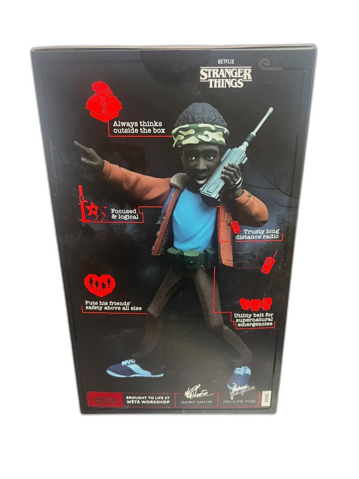 Découvrez la figurine stranger things « Lucas The Lookout » de Weta Workshop, une pièce incontournable pour les fans de la série culte. Cette figurine de collection en vinyle mesure 14,2 cm et capture parfaitement l’esprit courageux et loyal de Lucas Sinclair. Son design unique en style cartoon met en avant sa posture de guetteur, prêt à affronter les mystères du Monde à l’Envers.