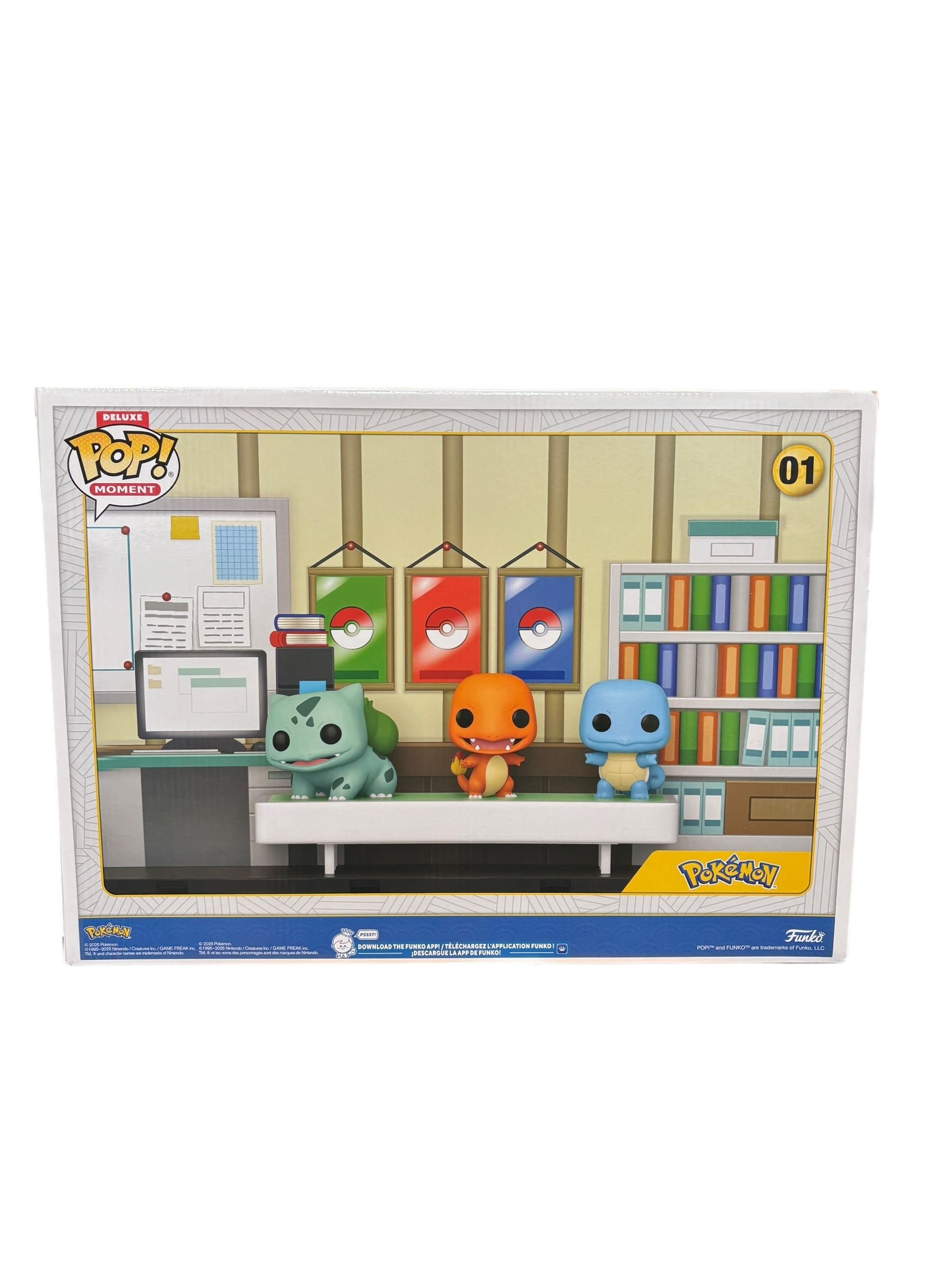 De plus, la mise en scène rassemble Bulbizarre, Salamèche et Carapuce dans un diorama richement détaillé.