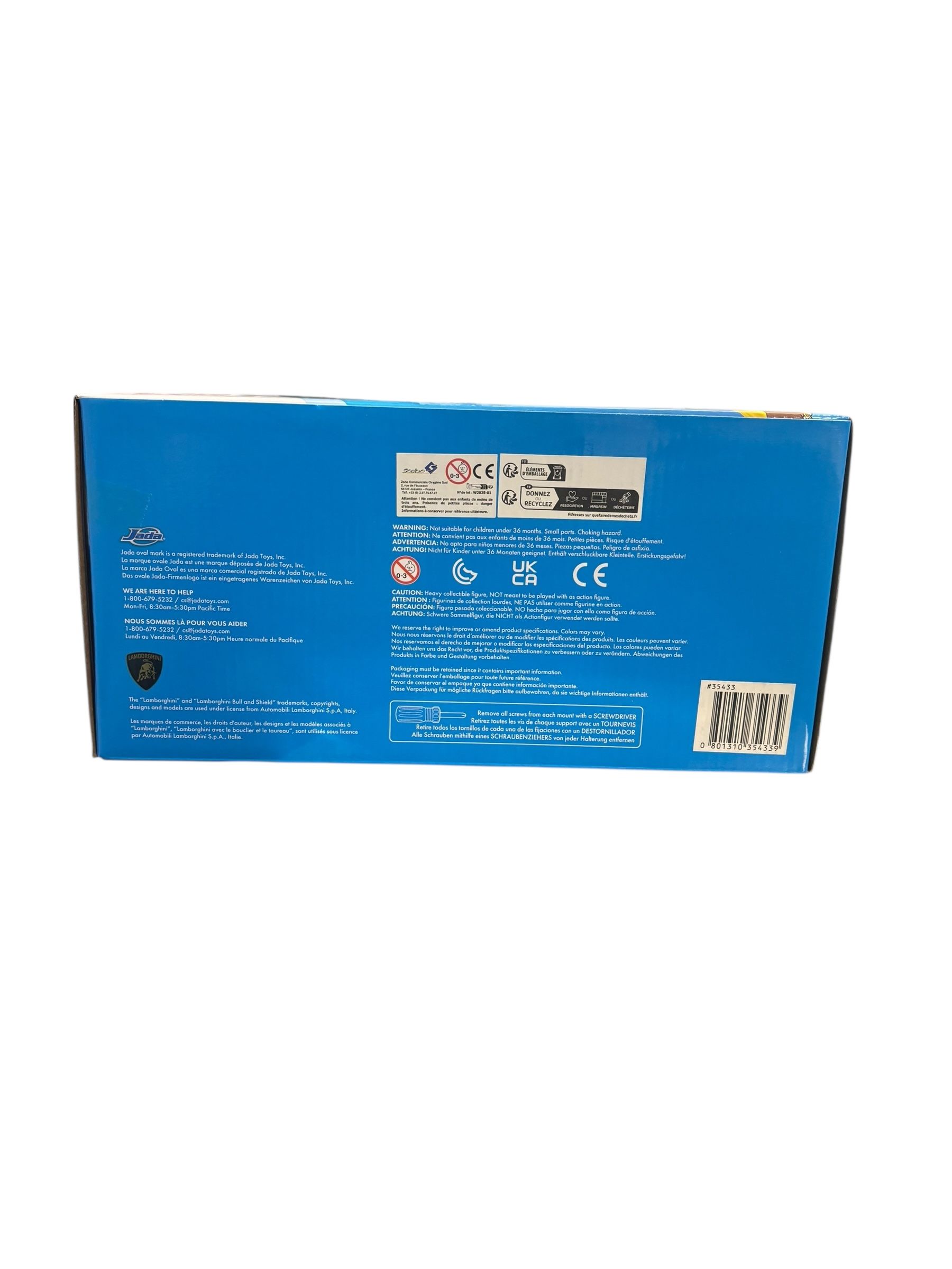En outre, la présence de la figurine Sonic apporte une touche ludique et unique, et le toit plat ainsi que les lignes agressives respectent le design original de la Veneno. De plus, les pneus en caoutchouc véritable accentuent le réalisme, et le rendu général satisfait aussi bien les collectionneurs adultes que les jeunes passionnés. Enfin, la qualité Jada Toys se retrouve dans chaque élément assemblé.