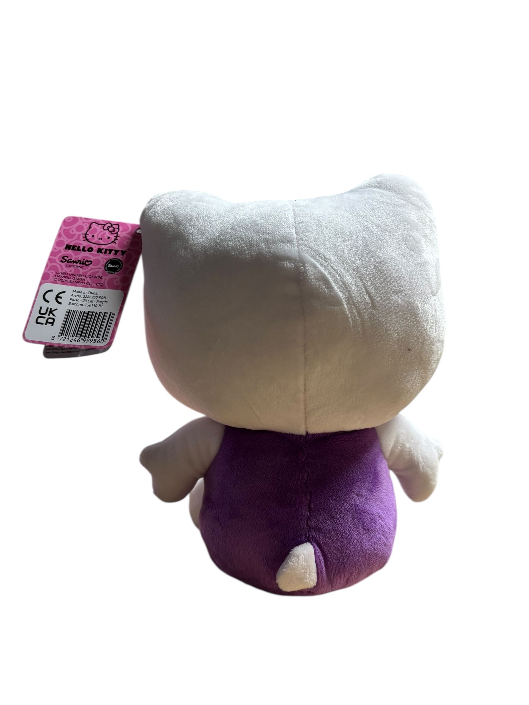 peluche Kawai Sanrio hello kitty salopette mauve 23 cm